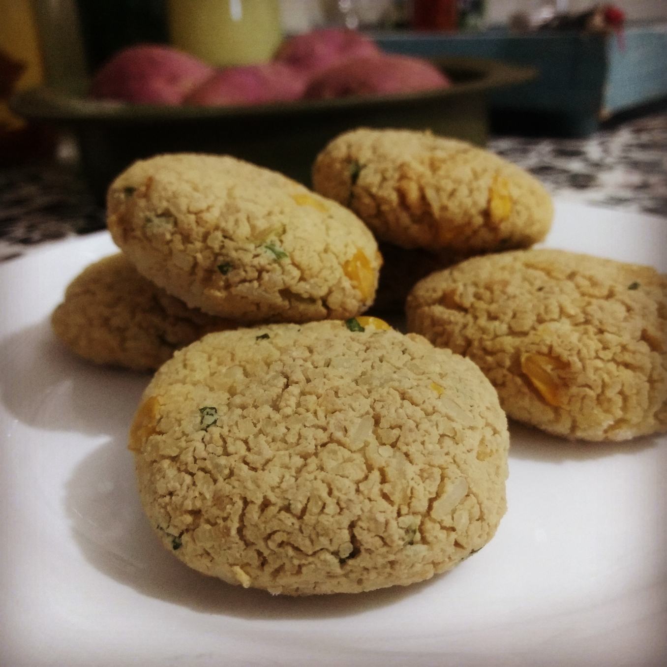 Após obter uma mistura maleável, fraciono em pequenas porções, moldo cada uma em forma de cookie e levo ao forno por pelo menos 30 minutos em temperatura de 180 graus. Pronto!