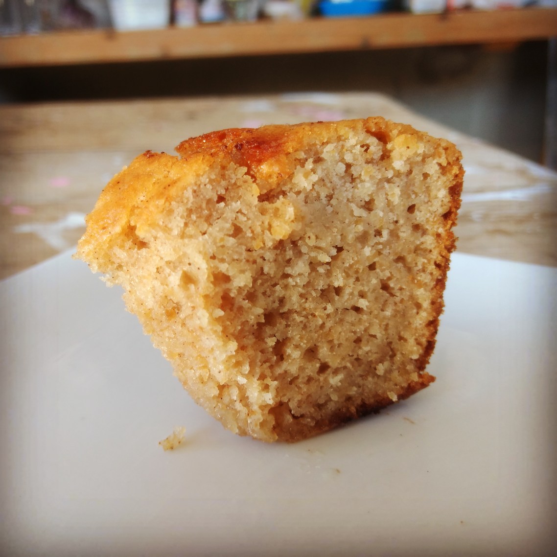 Depois acrescento uma xícara de farinha de trigo comum, uma xícara de farinha de trigo integral, meia xícara de açúcar demerara e uma pitada de sal. Se necessário, incluo mais um pouquinho de leite de soja.