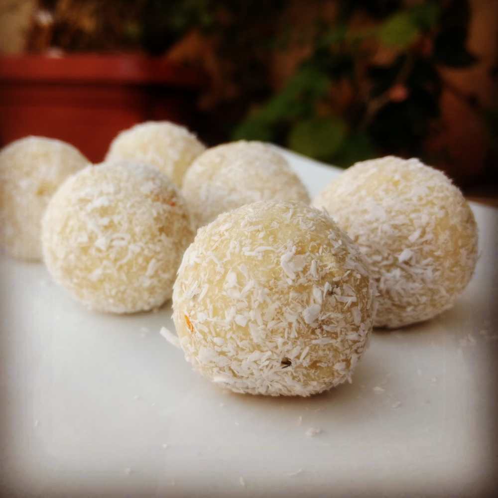 Misturo 500 gramas de batata-doce cozida bem amassada com 100 gramas de farinha de coco, 200 gramas de leite condensado de coco (usei caseiro mesmo, e a minha receita também está no Vegaromba.com) e as raspas da casca de uma laranja-baía. Após obter uma massa bem maleável, divido em 20 partes e enrolo. Para finalizar, enrolo em coco ralado sem açúcar (opcional) e levo ao refrigerador. Pronto!