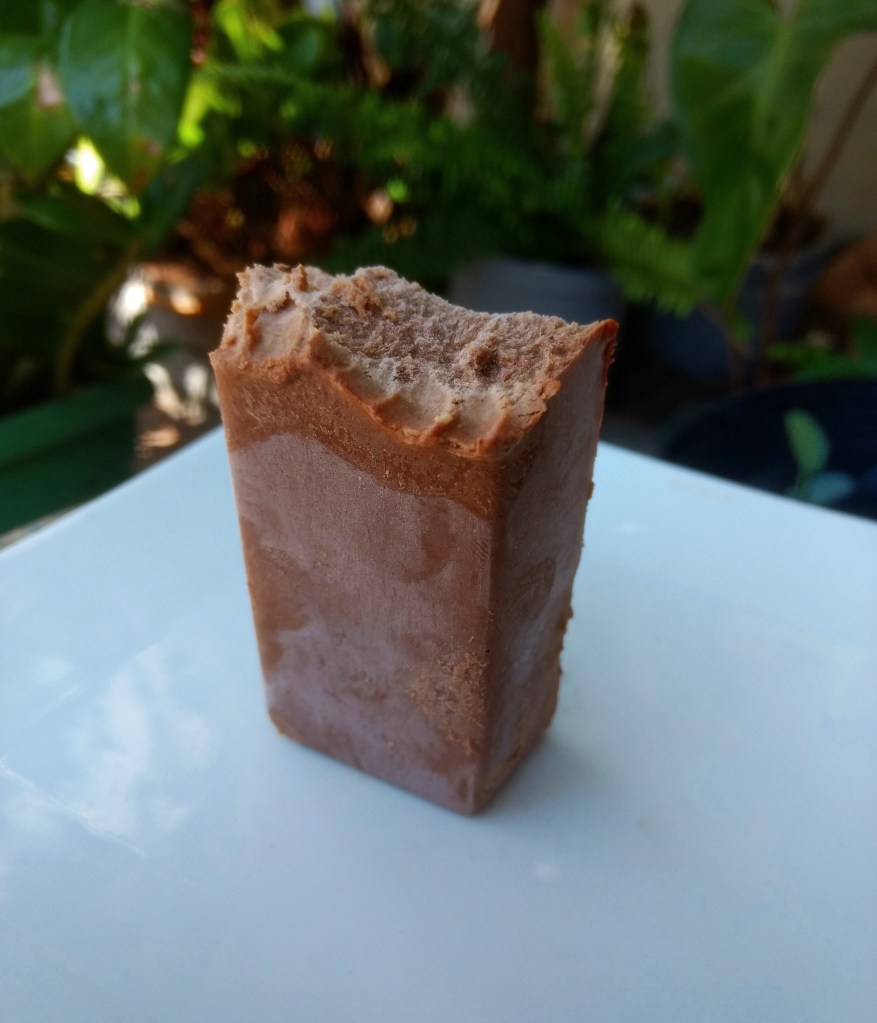 Leviano é um picolé vegano e proteico de coco queimado, pasta de amendoim e banana.