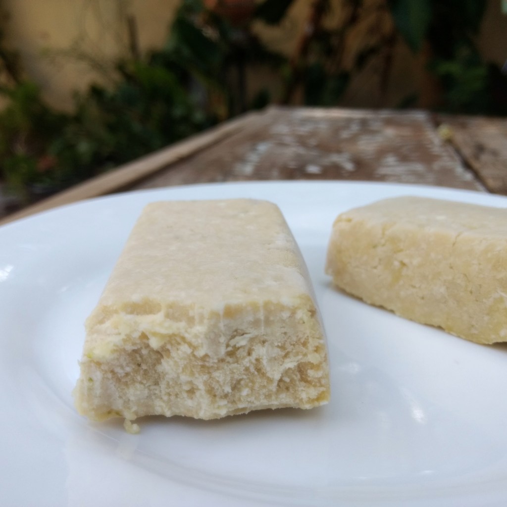 Misturo 350 gramas de batata-doce cozida e amassada com 40 gramas de farinha de coco, 40 gramas de proteína vegetal em pó (usei um blend de proteína de ervilha e de arroz – sabor baunilha) e as raspas da casca de uma laranja pequena. Após obter uma mistura maleável, divido em quatro partes e moldo de acordo com a minha preferência. Para finalizar, reservo no refrigerador. Pronto!