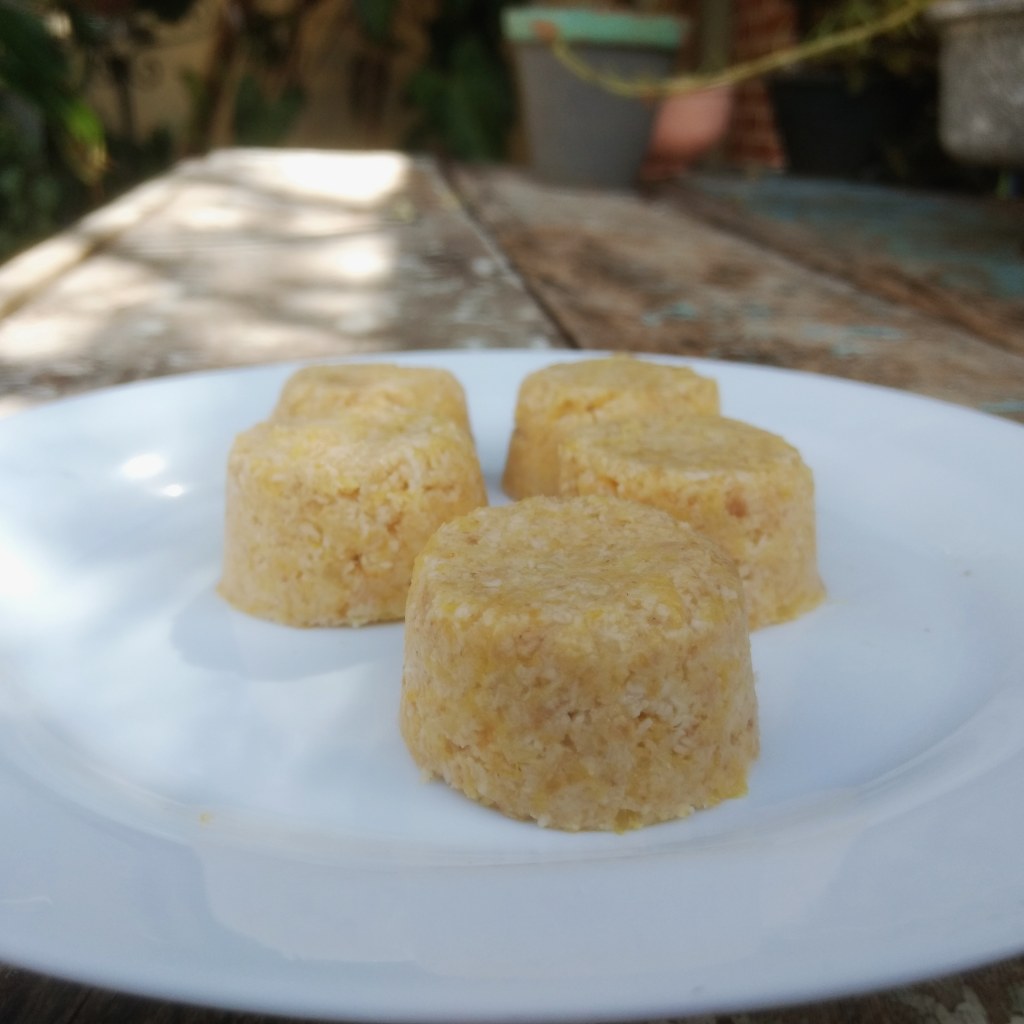Misturo 300 gramas de resíduos de suco de laranja com 40 gramas de farinha de coco e 50 gramas (ou dez unidades) de biscoitos integrais reduzidos a um farináceo. Então transfiro a mistura para dez forminhas e levo ao refrigerador. Pronto!