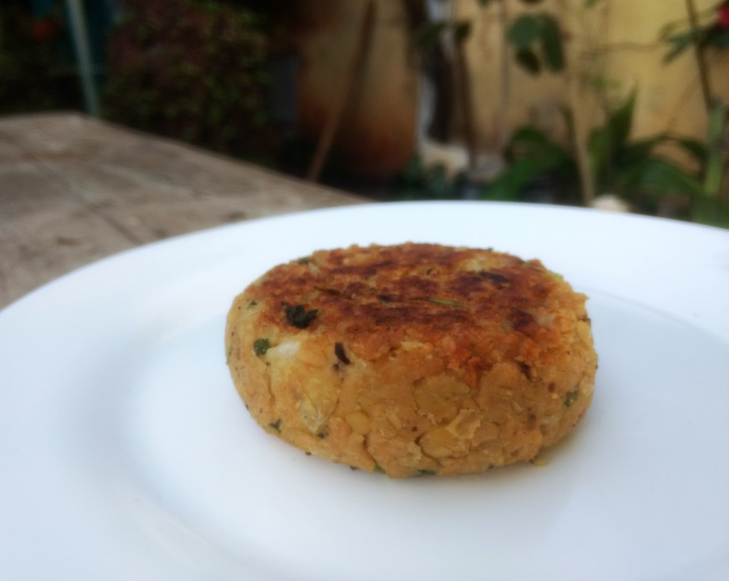 Kaskudo é um búrguer de PTS com grão-de-bico, laranja e coco. Cada unidade tem 19,2 gramas de proteínas.