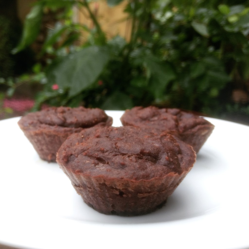 Misturo 200 gramas de banana (duas unidades médias) amassada com 20 gramas de cacau em pó, 50 gramas de pasta de amendoim, 20 gramas de farinha de coco marrom e meia colher de chá de noz-moscada. Transfiro para três forminhas e levo ao forno por pelo menos 25 minutos em temperatura de 200 graus. Pronto!